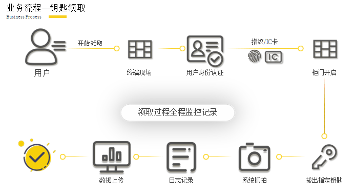 系統(tǒng)包括智能鑰匙柜、終端控制系統(tǒng)、管理平臺、中間件以及輔助設(shè)備。主要功能包括鑰匙領(lǐng)取、鑰匙歸還、鑰匙柜設(shè)備管理、視頻監(jiān)控、安防報警、視頻對講、遠程監(jiān)控、遠程操作、遠程設(shè)置、遠程升級、用戶管理、日志、報表、統(tǒng)計查詢等功能。